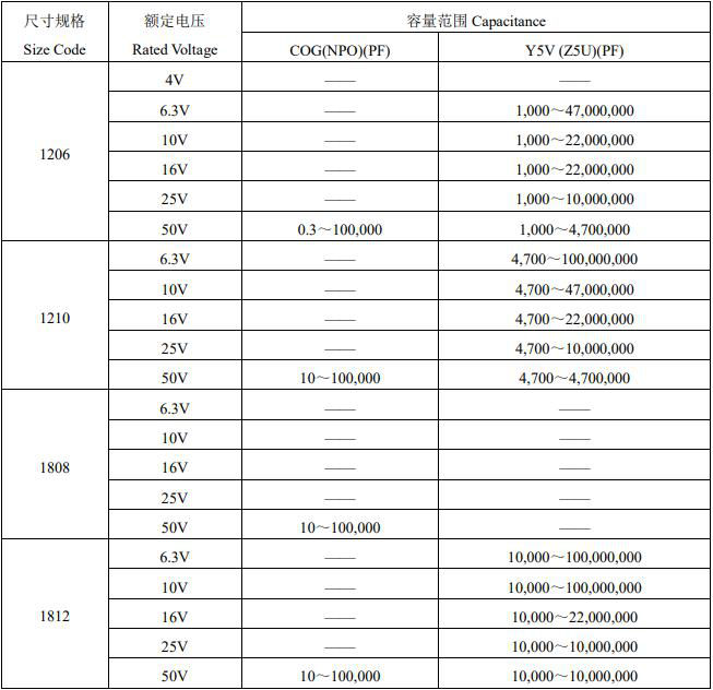 風(fēng)華貼片電容參數(shù)選購圖表如下
