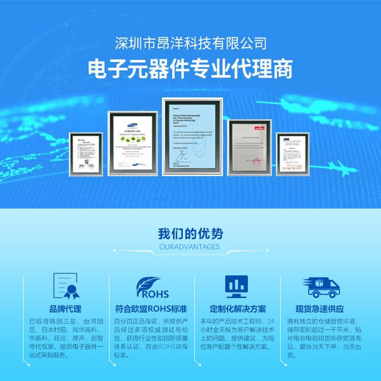 昂洋科技深耕電子元器件行業二十年,代理三星、村田、國巨、風華高科等全球知名品牌,產品覆蓋貼片電容、電阻、電感、磁珠等被動元件,以及IC、傳感器等主動器件。其核心優勢在于: