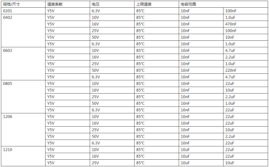 | CC Y5V電容特征 |